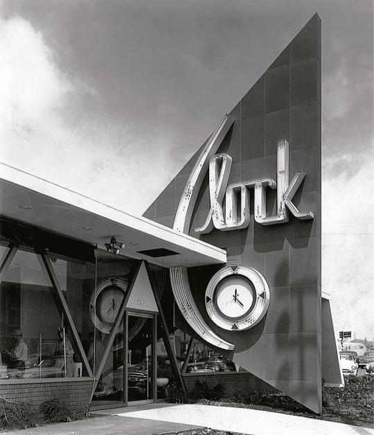 The Clock restaurant in Los Angeles, completed in 1951, was designed by Helen Liu Fong, a Chinese-American architect who grew up in LA’s Chinatown. by K1nsey6