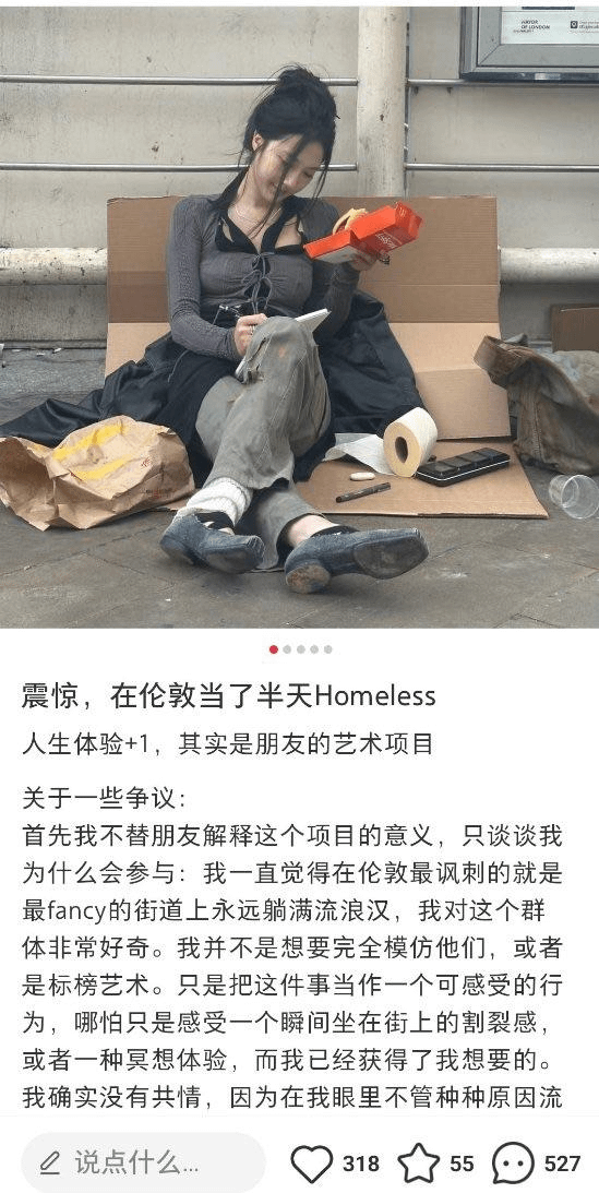 Someone who is so privileged tried to be (more like acting to be) homeless for a day in London?