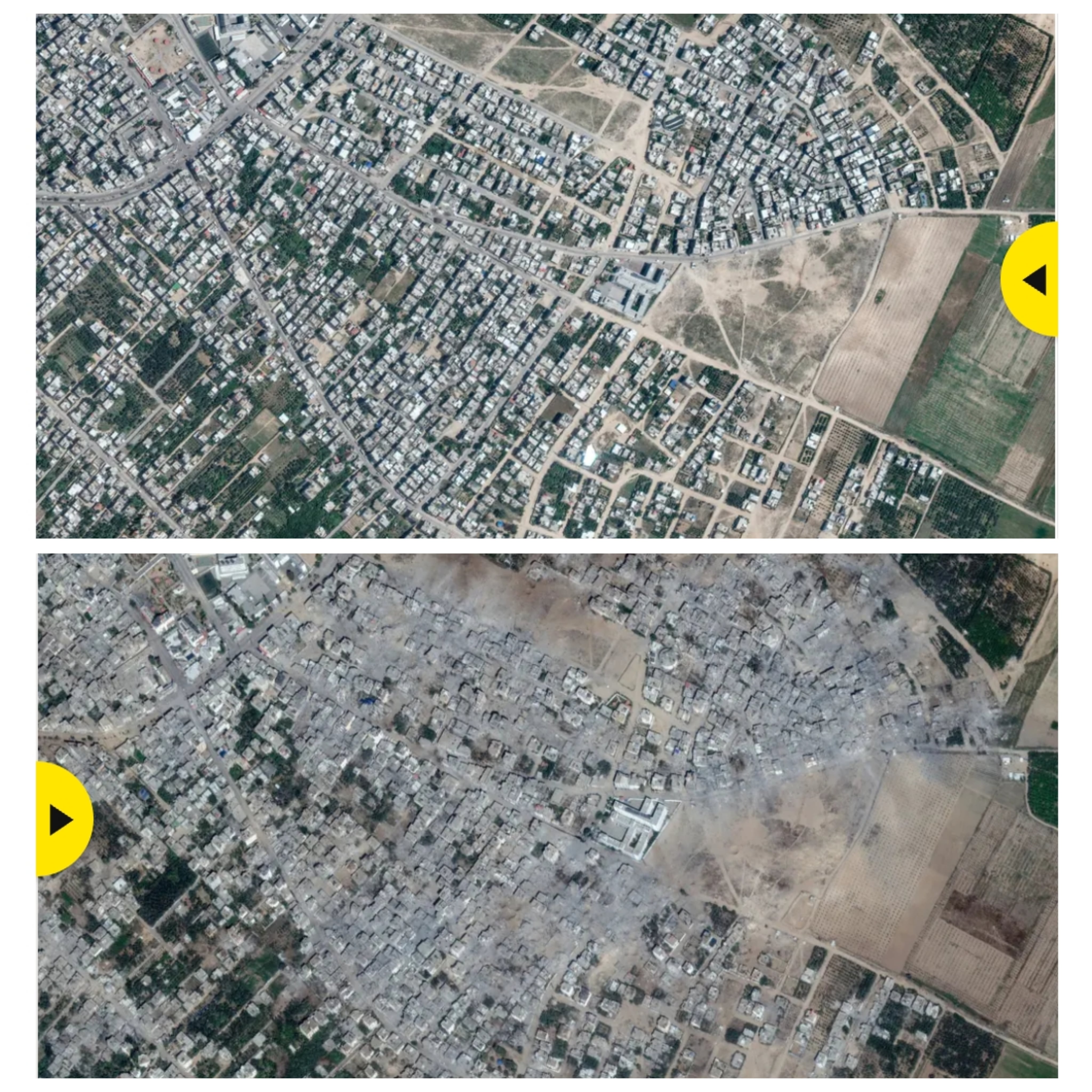 source: [https://www.theguardian.com/world/2023/oct/27/gaza-before-and-after-satellite-images-show-destruction-after-israeli-airstrikes](https://www.theguardian.com/world/2023/oct/27/gaza-before-and-after-satellite-images-show-destruction-after-israeli-airstrikes)