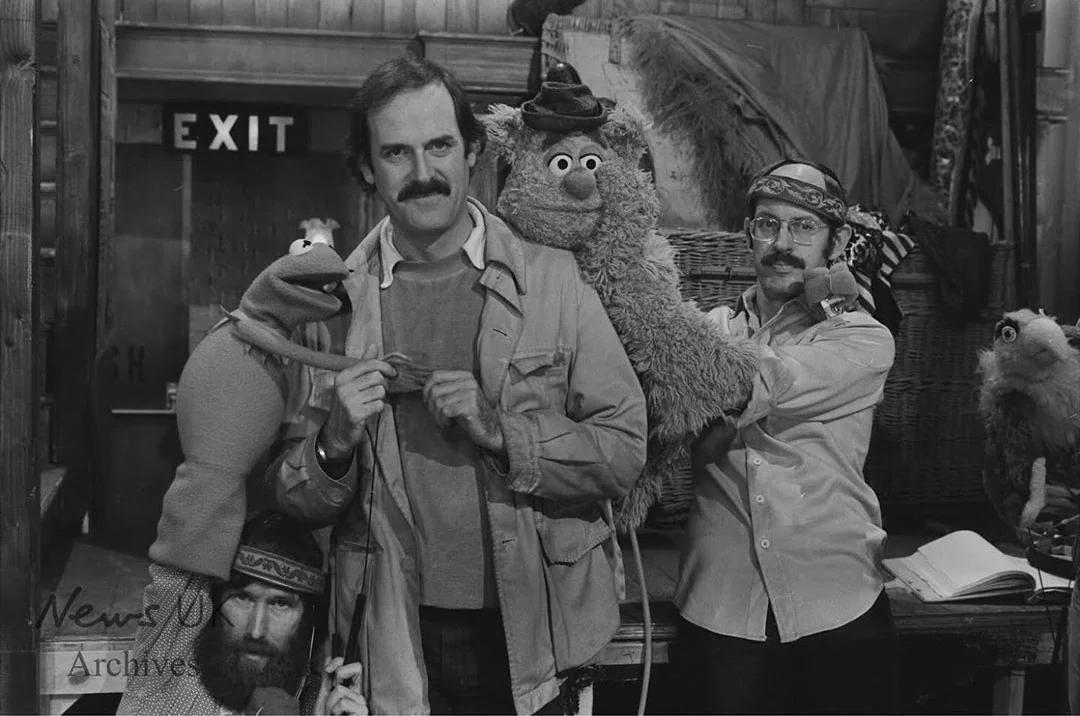 Jim Henson (Kermit), John Cleese and Frank Oz (Fozzie) in 1977. From behind the scenes of “The Muppet Show”.