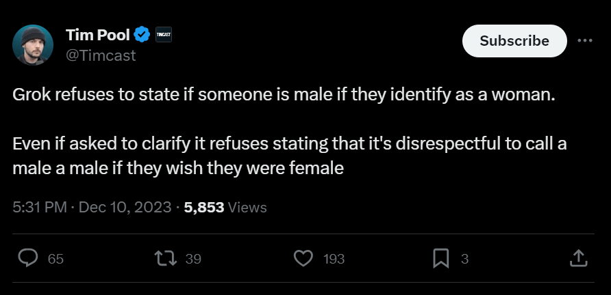 I have to admit, Musk’s AI being anti-Musk was not on my December bingo card.