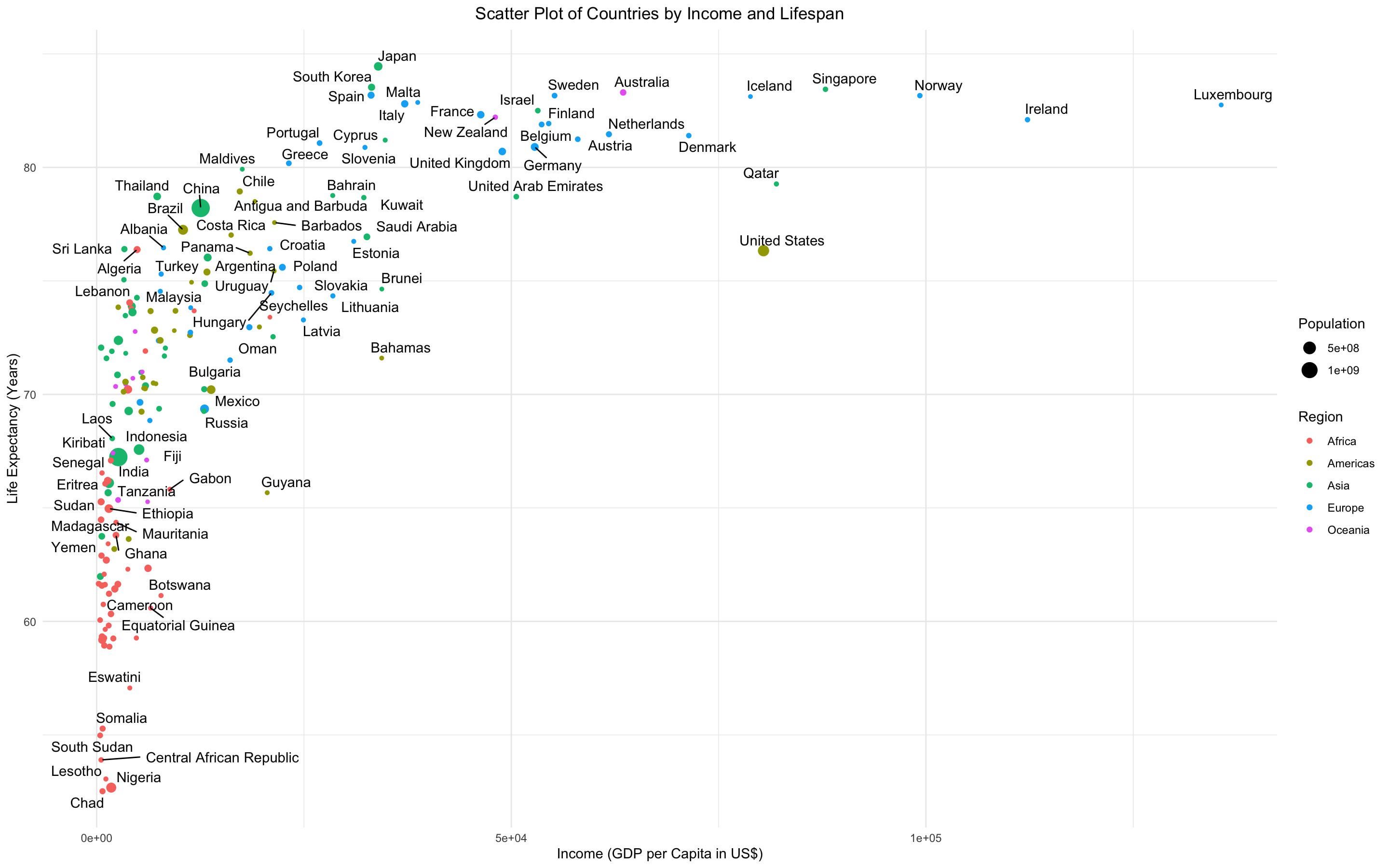 I remember book called Factfullness by Swedish Statistician Hans Rosing, and its Bubble Plot of countries at the beginning. Today I have decided to plot it myself.
