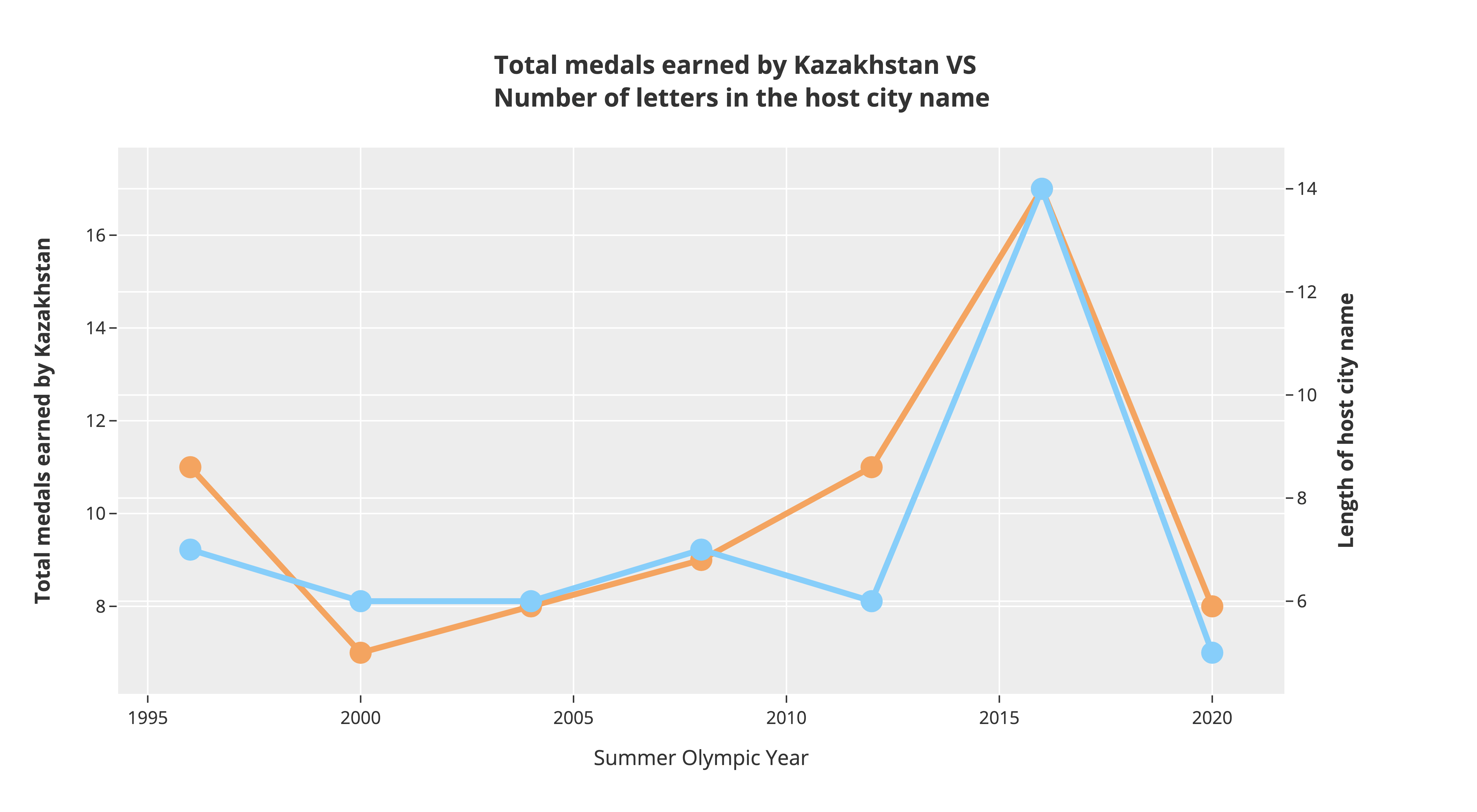 Inspired by [Tyler Vigen’s Spurious Correlations](https://www.tylervigen.com/spurious-correlations), which were posted here [a few days ago](https://www.reddit.com/r/dataisbeautiful/comments/1ad2uw3/oc_spurious_correlations_line_graphs_showing/), we set out to find startling and unsettling connections between different seemingly unrelated Olympic concepts for a visualization contest.