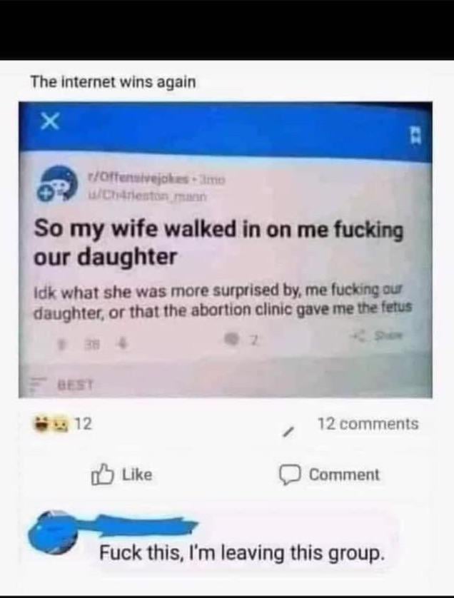 Puzzleheaded-Gear-15 on March 4, 2024 11:06 pm Cool. I’m done with the internet. Now how do I forget how to read so I can never read that again.
