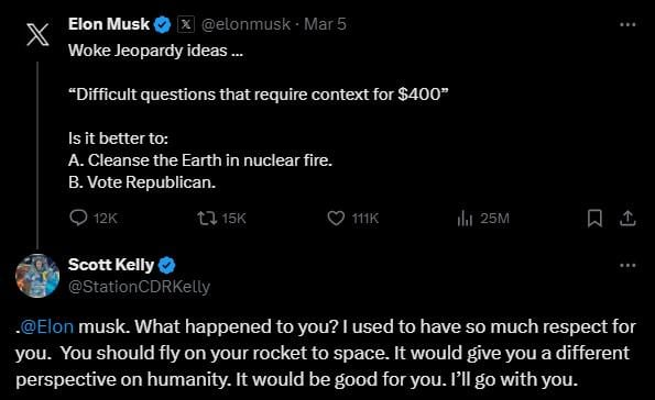 I am happy Elon managed to find an example of something that is even worse than voting Republican, albeit barely.