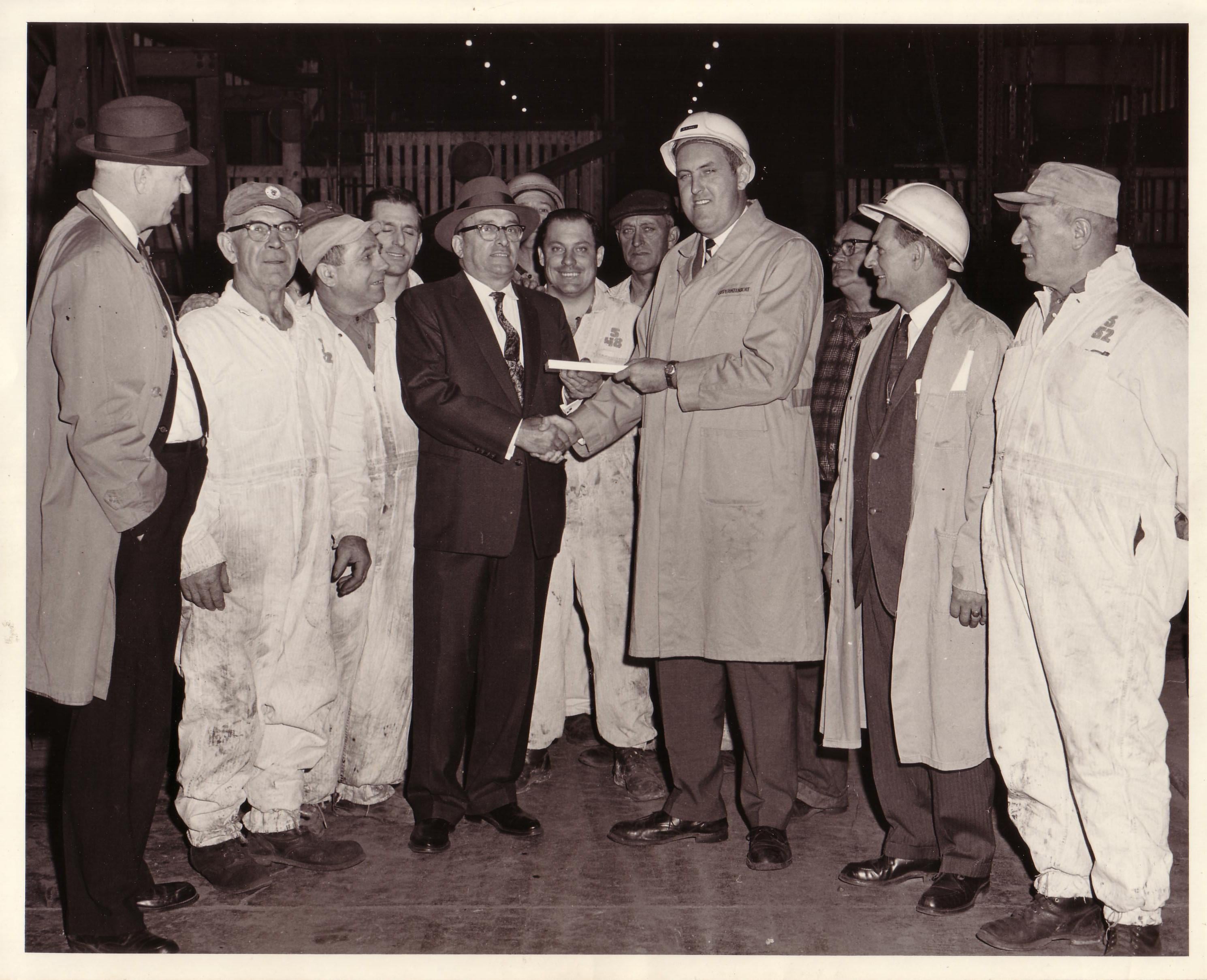 Grandpa’s retirement day. Ford Motor Company. 1966. The 5/48 on the men’s coveralls would indicate Plant 5, Dept 48, which would have been the now defunct Windsor Casting Plant, Maintenance dept.
