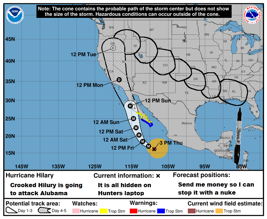 He did so many batshit crazy stuff and I forget them. He literally drew a sharpie circle on a NOAA map just because he misspoke. Rather than say “oh! My mistake I didn’t mean to say Alabama”, he doubles down and proclaims it’s true. I will never understand why he has 35% of the country under his spell.