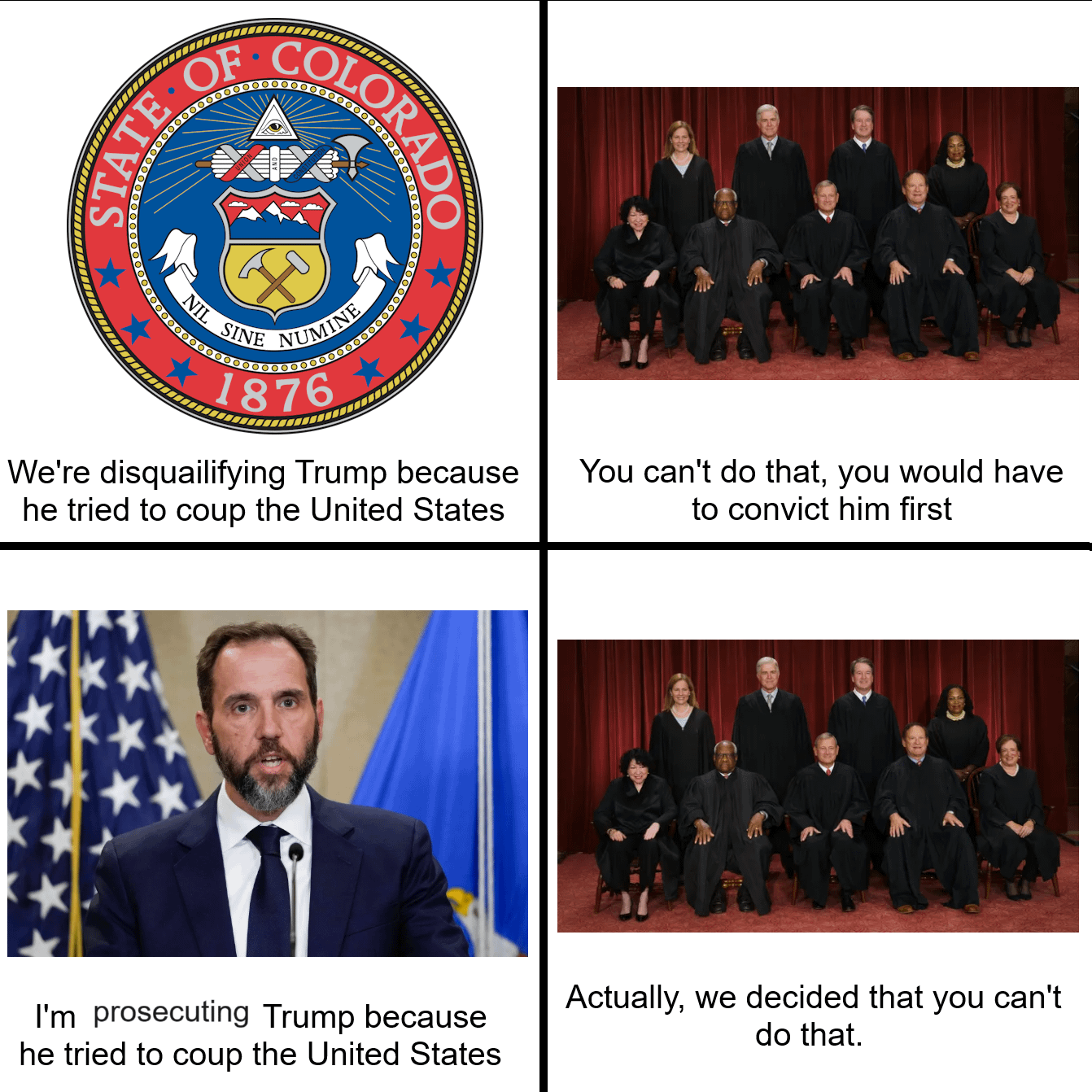 NotThatAngel on July 2, 2024 10:14 pm Republican SCOTUS is not setting rules to prosecute a coup. They’re aiding and abetting the coup, as ‘accomplices after the fact’.