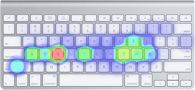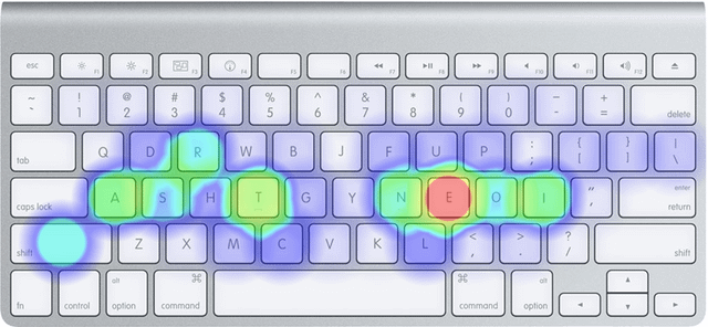 3. The heat maps shouldn’t be wobbly circles around each letter as they don’t impact each other. The space between letters isn’t a discrete stroke so why does it have a color? I get the idea of showing if you balanced strokes around the keyboard layout but the heat map instead of just a key color only confuses the actual information.