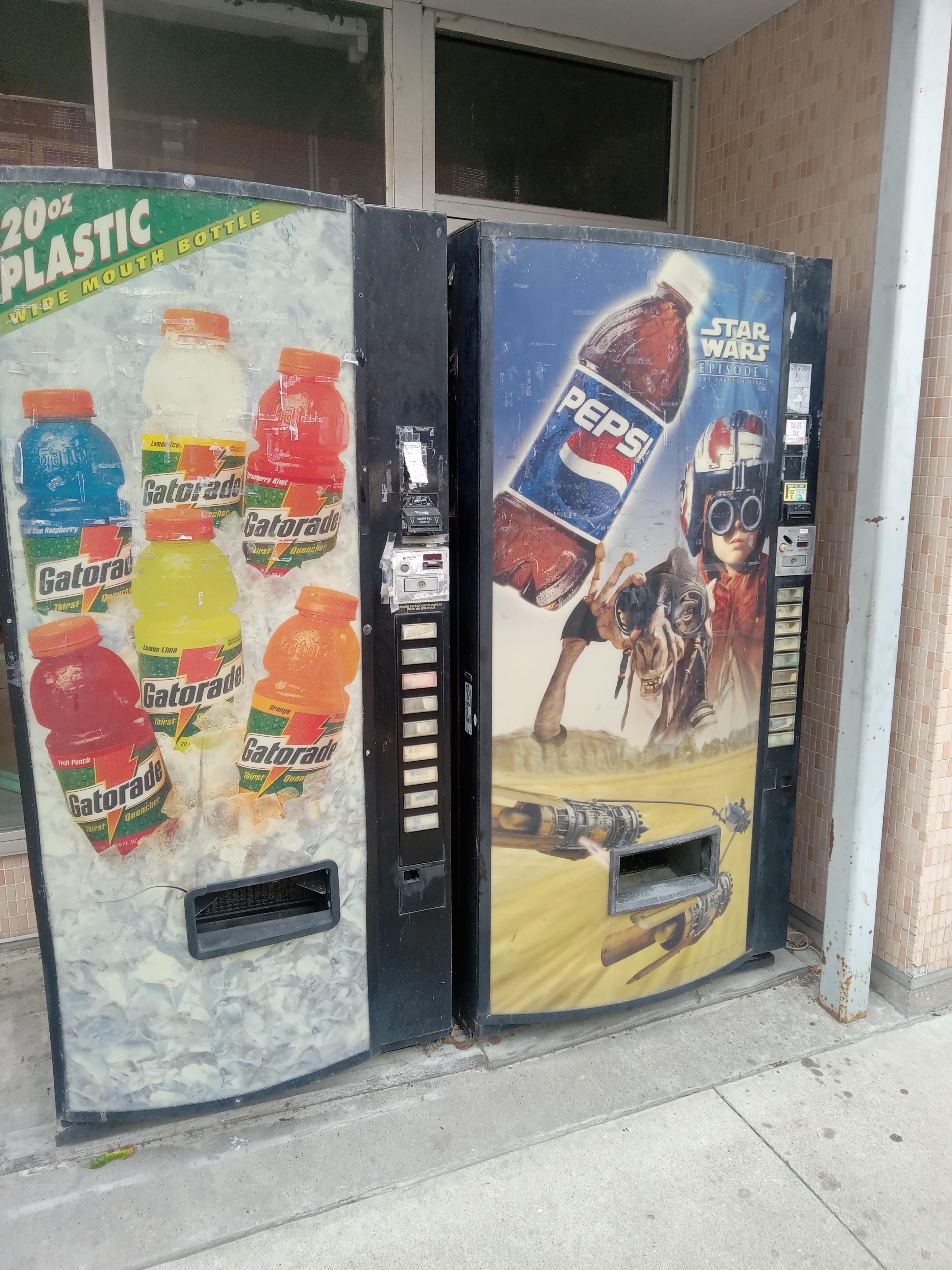 Gatorade and Pepsi vending machine I came across. Both still working despite rough shape by Present-Mine-2316