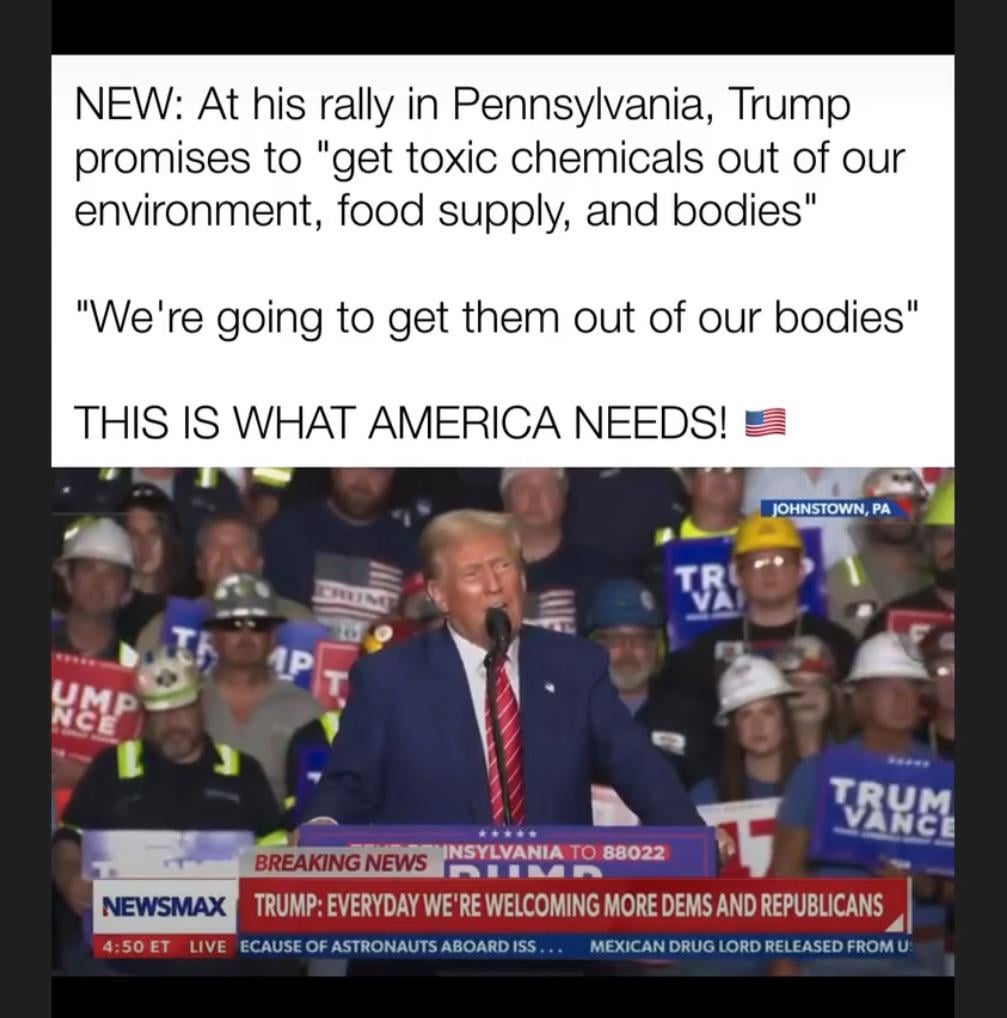 What the fuck does even mean? I know it’s stupid to ask, but how? How are you going to get the chemicals out of our bodies? He doesn’t even know what chemicals are. When he says chemicals, he means glowing shit in a lab. Our brains run on chemicals. Our body produces chemicals. Everything is fucking chemicals. Fire is a fucking chemical process. Like I understand he means “we are gonna get the bad stuff out of our bodies” but he fundamentally does not understand the thing he is talking about. He doesn’t know what a good chemical is or a bad chemical is. He doesn’t know anything. Fuck. People work so hard to learn, explore, and know things….and this motherfucker waltzed through life coked to the gills, shunning anything to with work or learning. It makes me sick to my core to exist on the same plane as such a dim witted, uninterested mockery of the human form. My loathing for him and his followers knows only the depths of the universe as kin in size and vastness