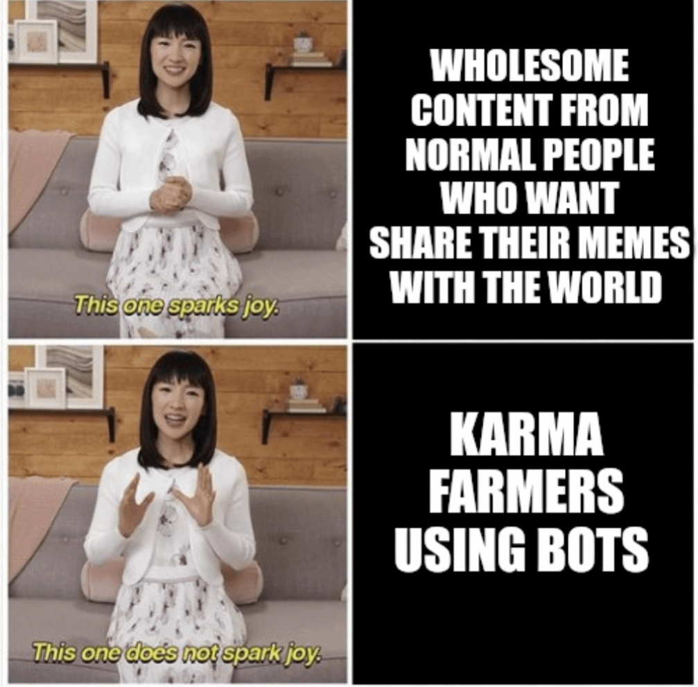 Original-Nobody2596 on September 3, 2024 3:17 pm What is the use of karma bots ? Why do people farm karma ? It’s not like they are getting paid or anything