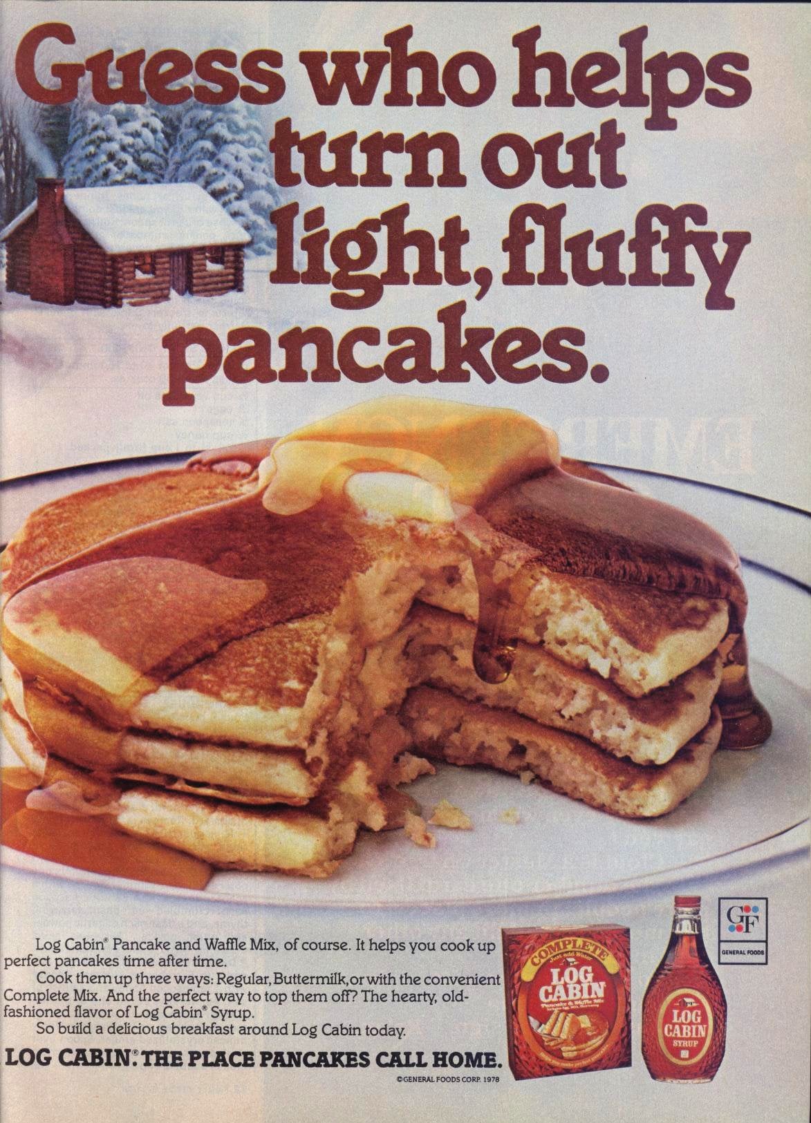Log Cabin Pancake Mix and Syrup, 1978