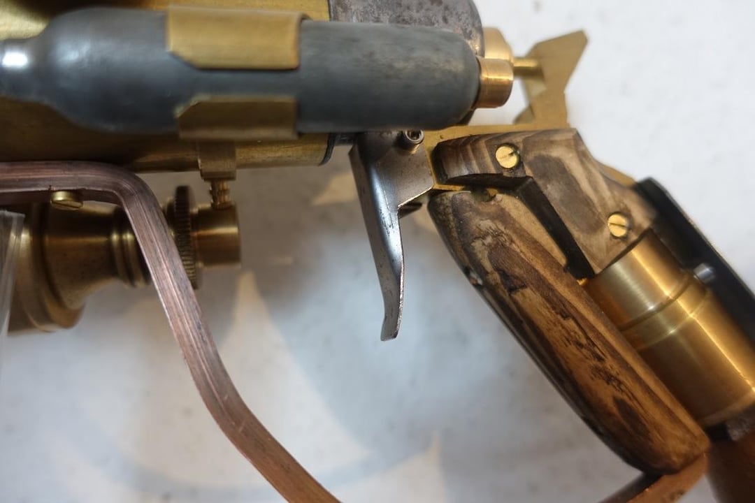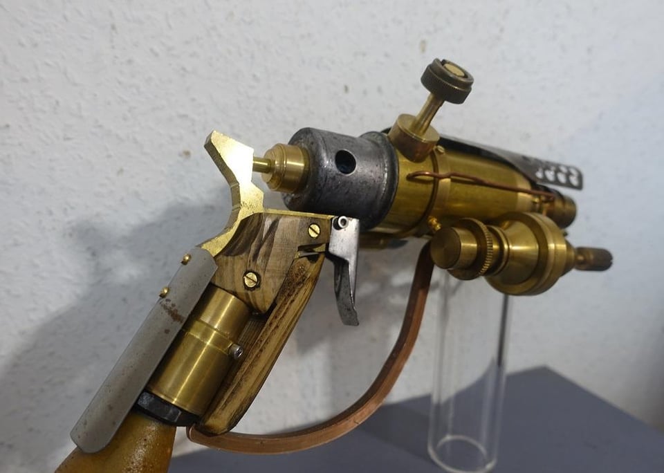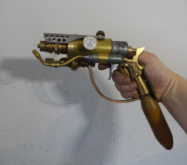 I made a ridiculously impractical but cool looking welder prop. Used an old east-german mini-fire-extinguisher for the tank, the rest is made of selfmade parts, mostly brass and some steel. Even that lil gauge is selfmade.