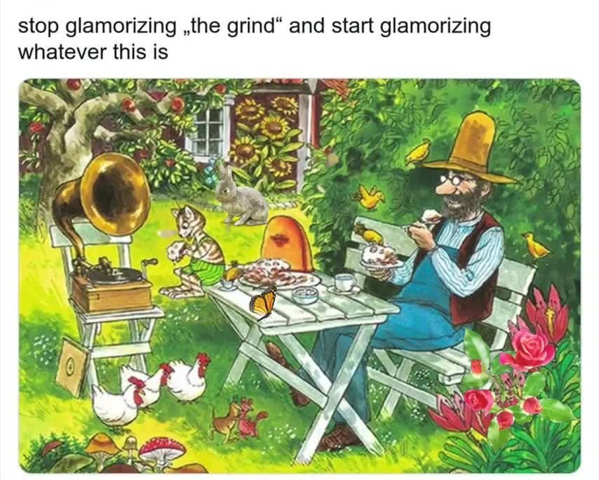 If you don’t know: This is artwork from the Swedish children’s book series „Pettson and Findus“ (or possibly the German TV adaptation „Petterson und Findus“).