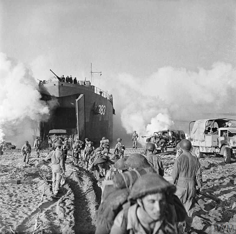 British troops and vehicles from 128 Brigade, 46th Division are unloaded from LST 383 onto the beaches at Salerno, Italy, 9 September 1943 [800 × 792] by HeStoleMyBalloons