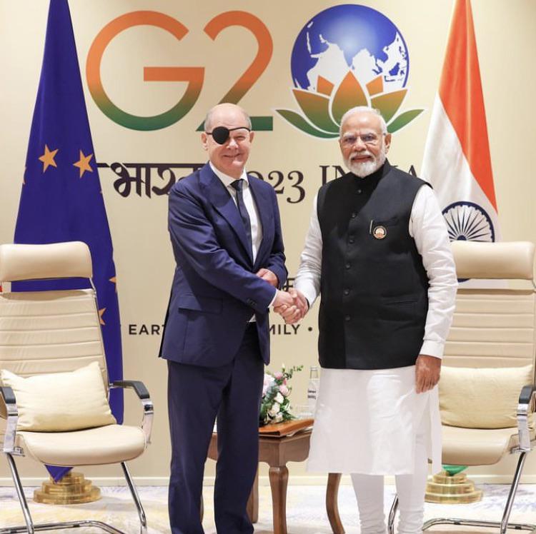 [This image is not photoshopped] This is Leader of Germany Olaf Scholz wearing eyepatch to G20 meet with Modi after injuring his eye during jogging. by NoTelevision5626