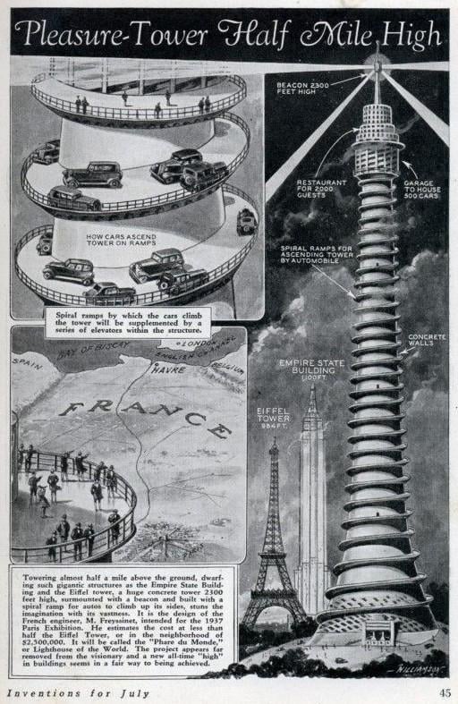 “Garage to house 500 cars” at the top of the tower… ok buddy
