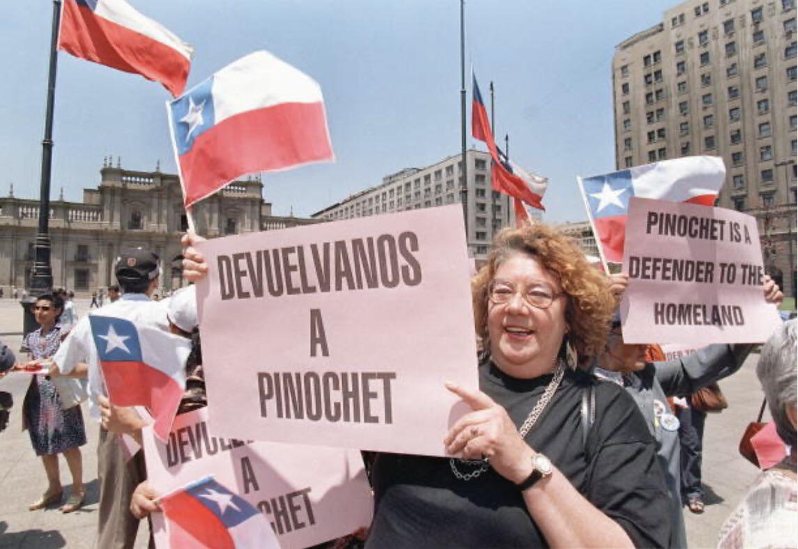 A supporter of former Chilean dictator Augusto Pinochet holds up a sign reading “Give us Pinochet back” in front of La Moneda presidential palace in Santiago. He had recently been placed under house arrest while in London, after a Spanish judge indicted him for human rights abuses, 1998 (1145×787)