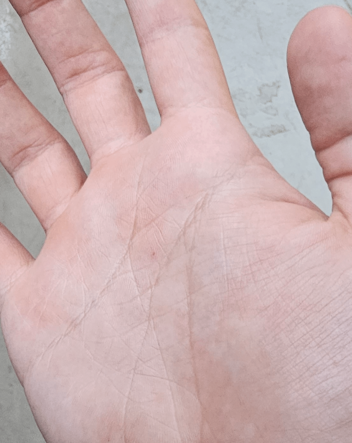 I also have a red spot on my palm from something? It’s only a few years old though.