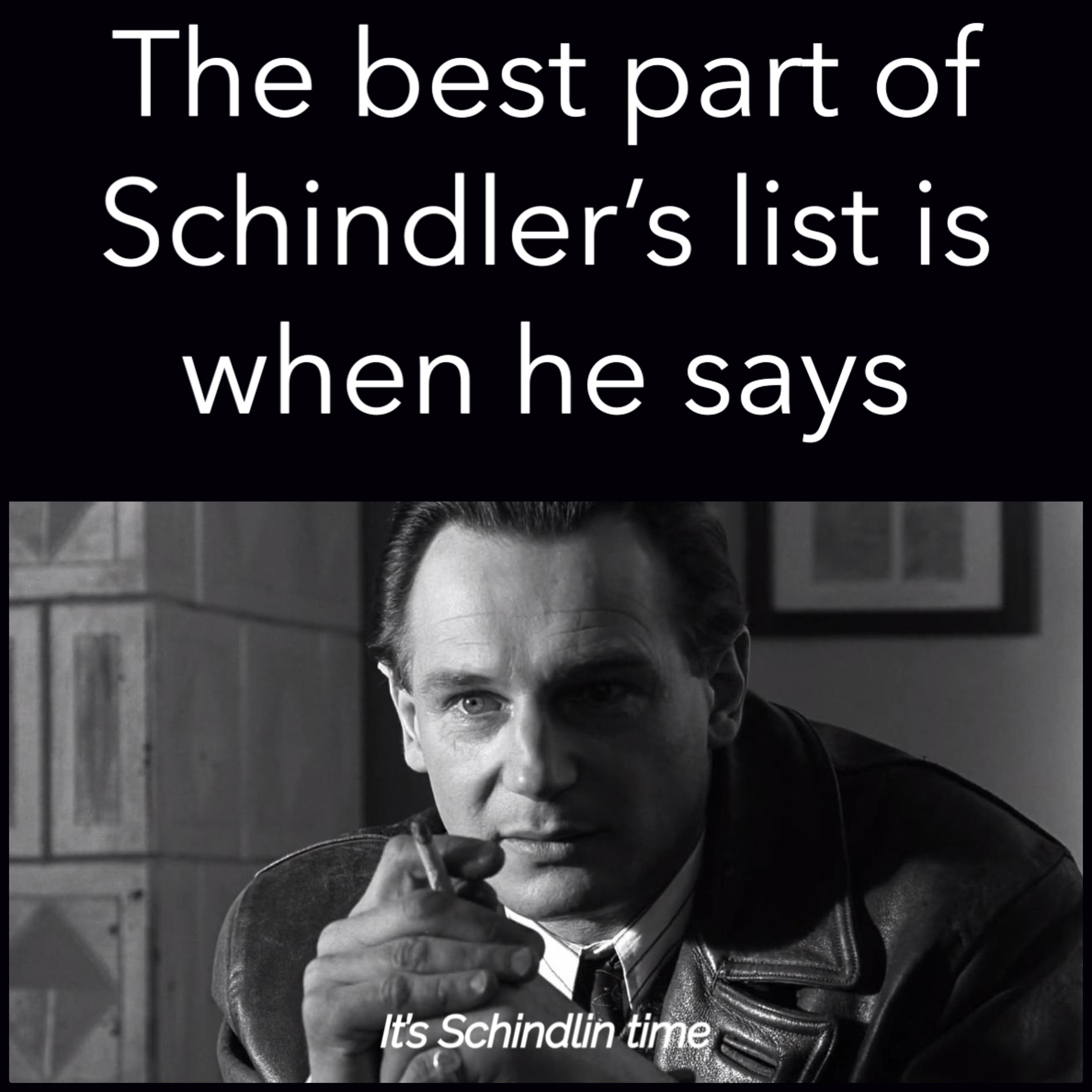 I liked the scene where one character asks another what’s on the piece of paper he’s holding and the second guy says “Schindler’s list” and I was like “That’s the name of the movie!”.