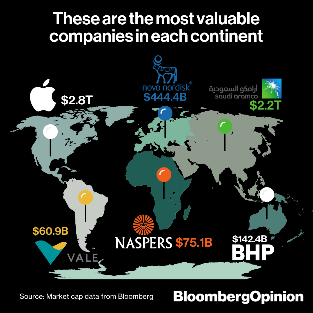 WitnessBig9282 on September 11, 2023 5:31 pm Revised version with corrected map outline. Source: Bloomberg Created with Canva Read more: [https://www.bloomberg.com/news/articles/2023-09-01/novo-nordisk-briefly-overtakes-lvmh-as-biggest-european-company](https://www.bloomberg.com/news/articles/2023-09-01/novo-nordisk-briefly-overtakes-lvmh-as-biggest-european-company)