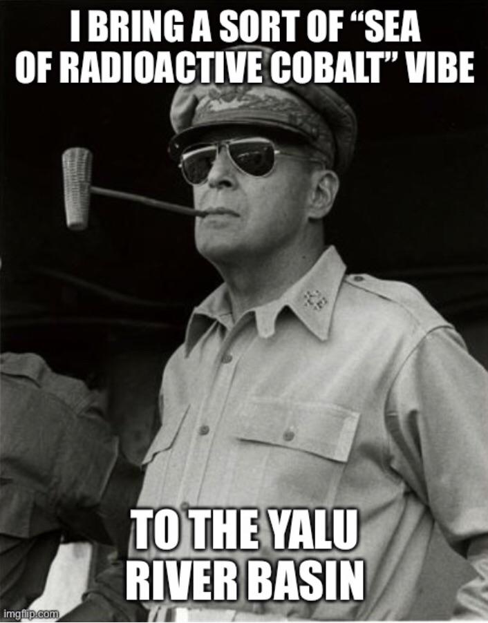 Also MacArthur: *Puts paper bag over head* THERE ARE NO CHINESE IN KOREA! FAKE NEWS!