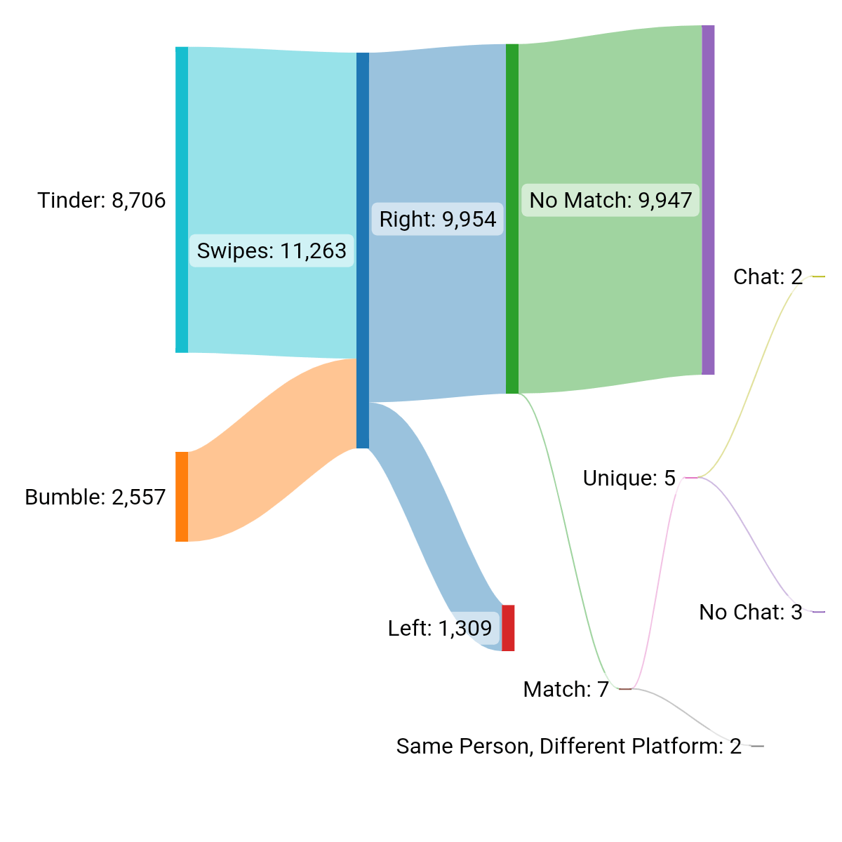 4. The other 3 were Bumble matches. Got no first chat from them.