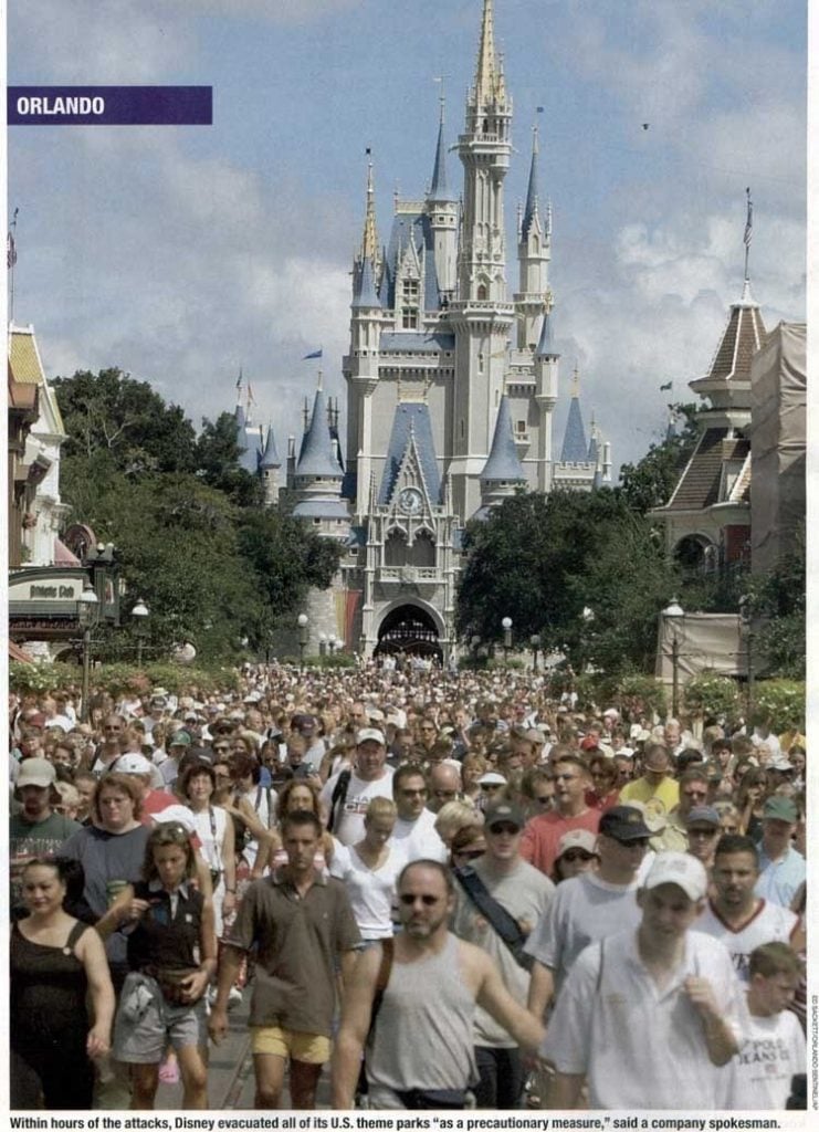 Guests leaves the Magic Kingdom theme park at Walt Disney World in masses within hours of the 9/11 attacks 22 years ago today on September 11, 2001 by TrendWarrior101