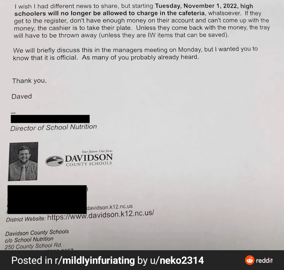 This is the school lunch policy in NC. So if the students don’t have money they can’t eat? credit to the op who posted the picture and ty for doing so.