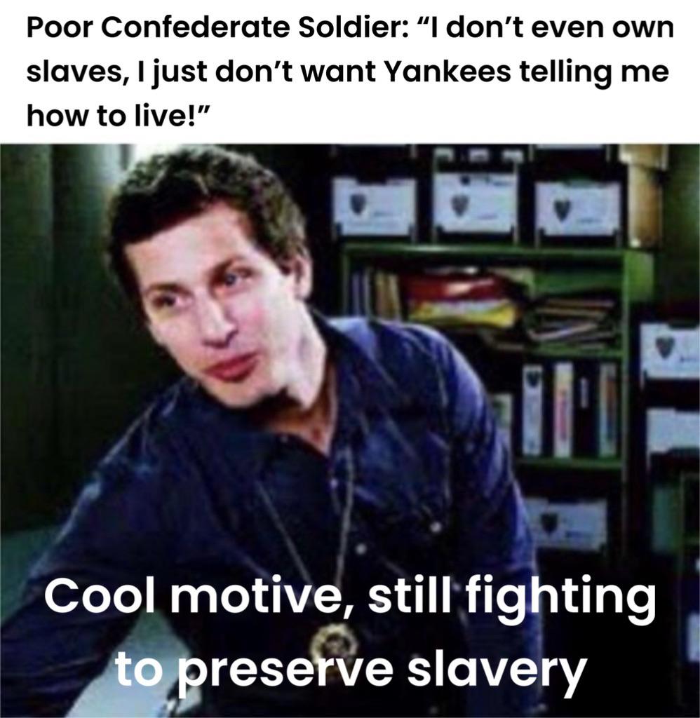 One of the only times Im patriotic is when talking about the Civil War and fourth of July. I also will say the Civil War happened for the rich to preserve and spread slavery.