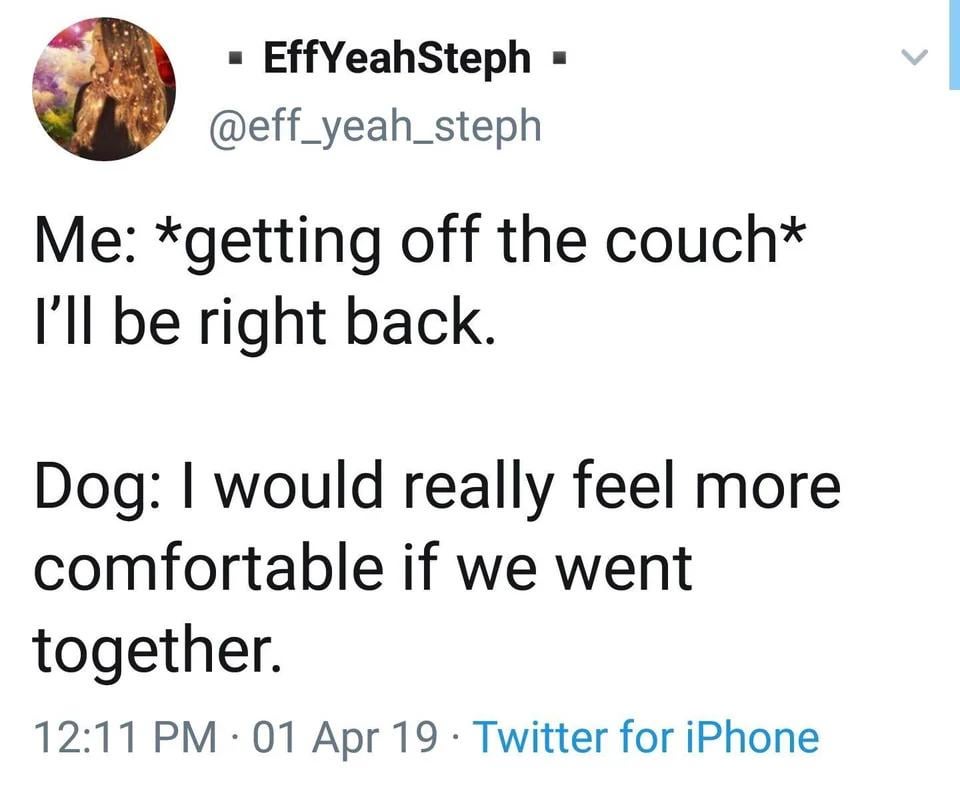 1. My dog does this all the time too. I feel bad for her too cause she just looks soooo comfortable resting in her bed, but me going to the bathroom forces her to get up and walk with me