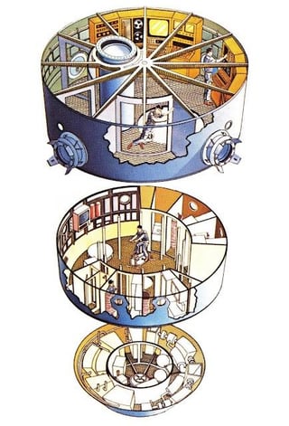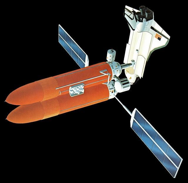 From a 1982 proposal to stop jettisoning the Shuttle’s external fuel tanks and instead use them to construct a space station. by Xerxes_Iguana