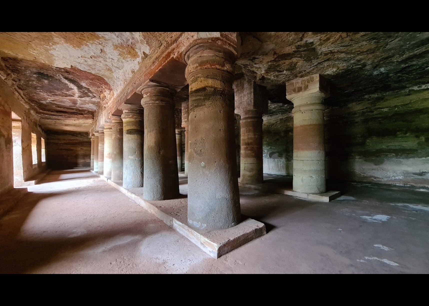 Interior of the Bagh Caves in Madhya Pradesh, India. These rock-cut Buddhist temples date from the 5th century and were commissioned by the Satavahana king Maharaja Subandhu of the Mahishmati kingdom. They contain remnants of exquisite wall-paintings depicting stories from Buddhist canon [1716×1224]