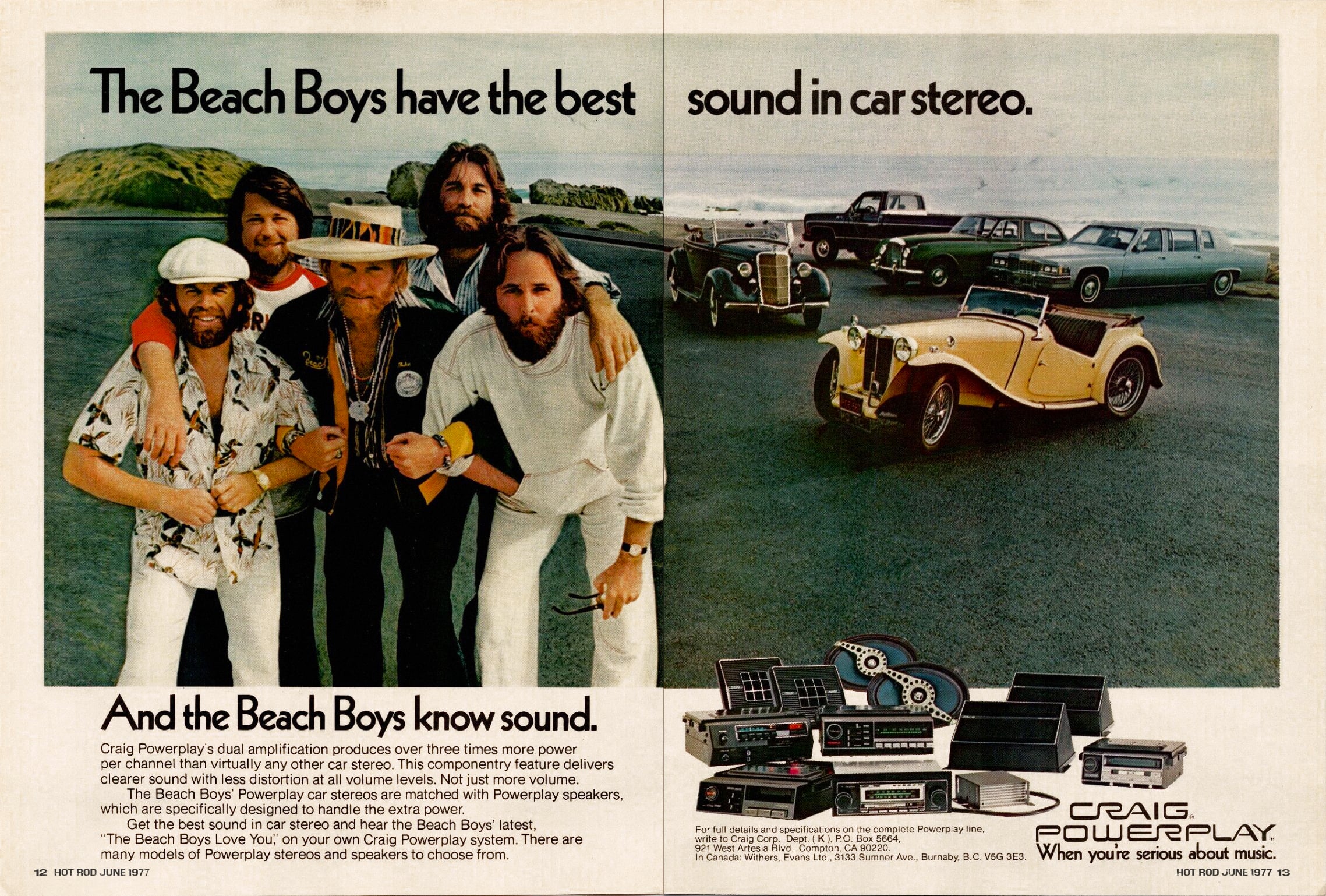 Craig Powerplay Car Stereos and Speakers – featuring The Beach Boys (double page ad) ,1977