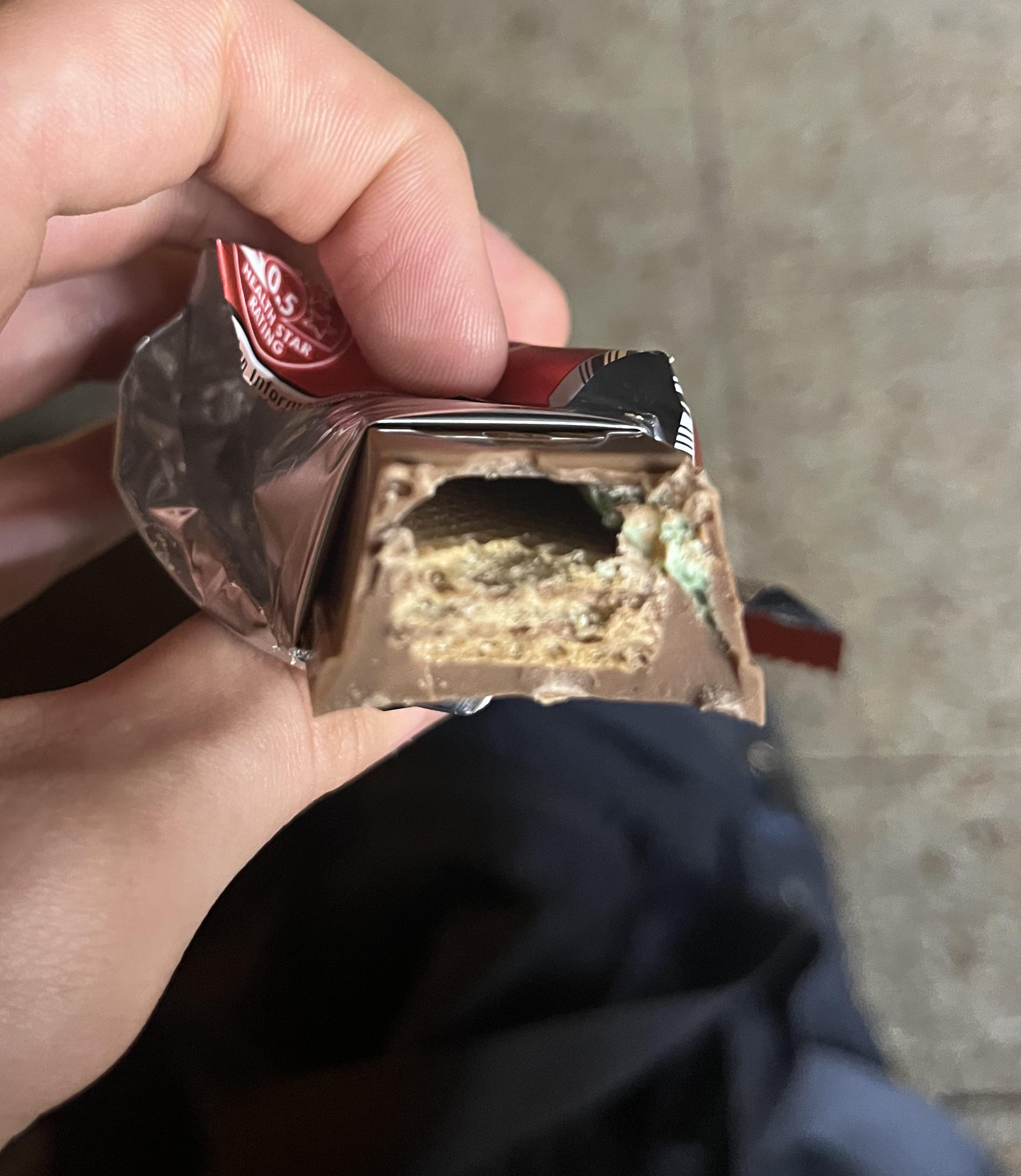 I saw a post earlier showing his kitkat was pure chocolate without a wafer lol