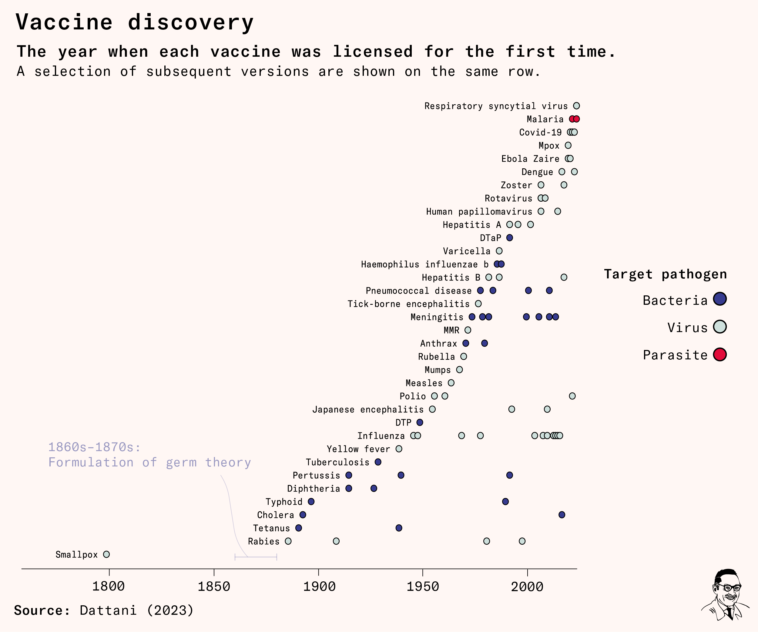 [OC] Timeline to show how the development of new vaccines took off after germ theory.