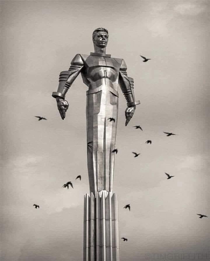 Monument to Yuri Gagarin, the 42.5-meter high statue made of titanium.