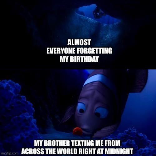 *my brother and I texting each other roughly within the right week of each other’s birthdays*