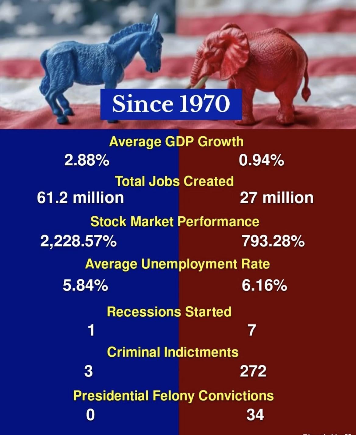 This data would be hard to totally parse out because the difficulty in evaluating the impact of a prior administration on current reality. This chart seems like a tool to divide our thinking into one of two parties. This is getting old and we should call it out when it comes from either side. The actual truth is very complex and involves all of us.