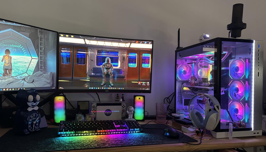 Me gustaría enseñaros mi setup retro futurista, KitCat Clock de normal lo tengo colgado en la pared al lado del ordenador. by Azucarilla11