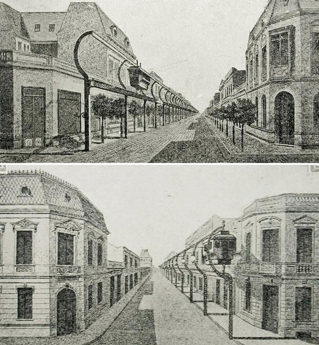 Project approved by congress in 1890s. Never built due to the economic crisis of the end of century, and replaced 10 years later with te project of an underground train.