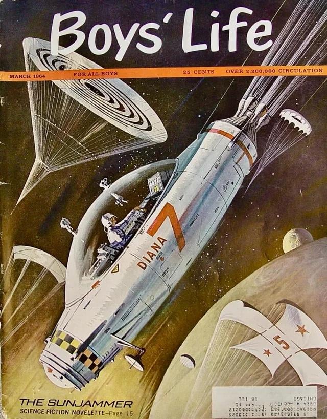 Boys’ Life, March 1964. Featuring “The Sunjammer” by Arthur C. Clarke. Cover art by Robert McCall by woulditkillyoutolift