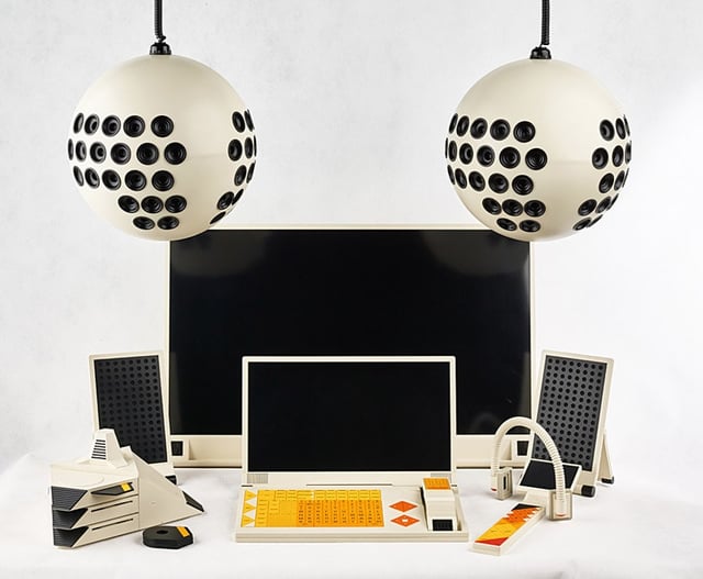 The government of the Soviet Union, who was largely in charge of giving the technology and industrial design bureaus their marching orders, was, for a brief time in the 60's, 70's, and 80's, interested in automating the command economy through monitoring indices, feedback, etc; essentially creating a economic homeostasis from creating a causality network that was responsive to changes elsewhere in the network. This concept is called Cybernetics (which has later come to colloquially mean machine parts in an animal), and by the late 1980's, material wealth and access to technology was becoming sufficient that the average soviet citizen had a few appliances, and Project Sphinx was a 1988 attempt to link them via a modular central home computer system. The design language was very much forward thinking, and yet still very of-its-time; the chunky hard angles are reminiscent of 80's and 90's western tech, and the color palette and the pyramidal motifs remind of the late 70's in the west, as well as the 2000's.