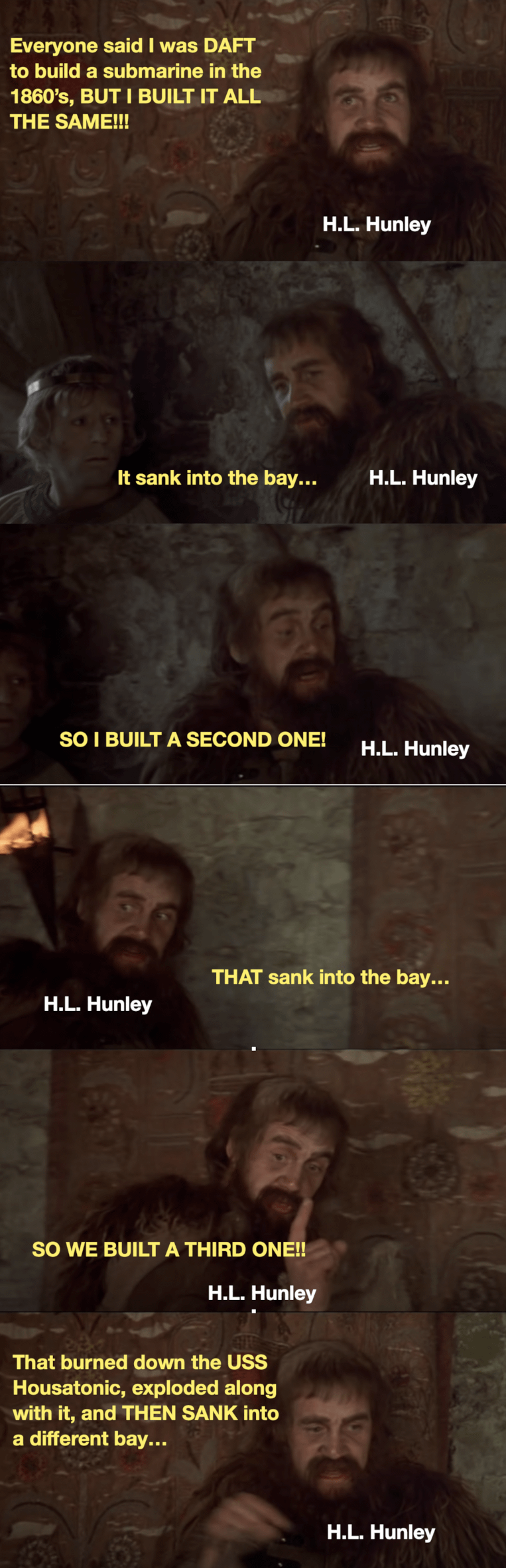 What gets me is how they kept convincing sailors to man a submarine that had a 100% fatality rate (really 300% by the end)