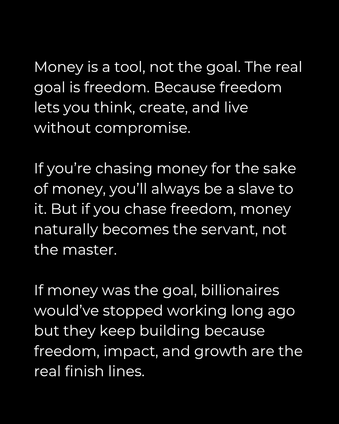 No, billionaires keep building because they are sociopaths. They already have freedom.