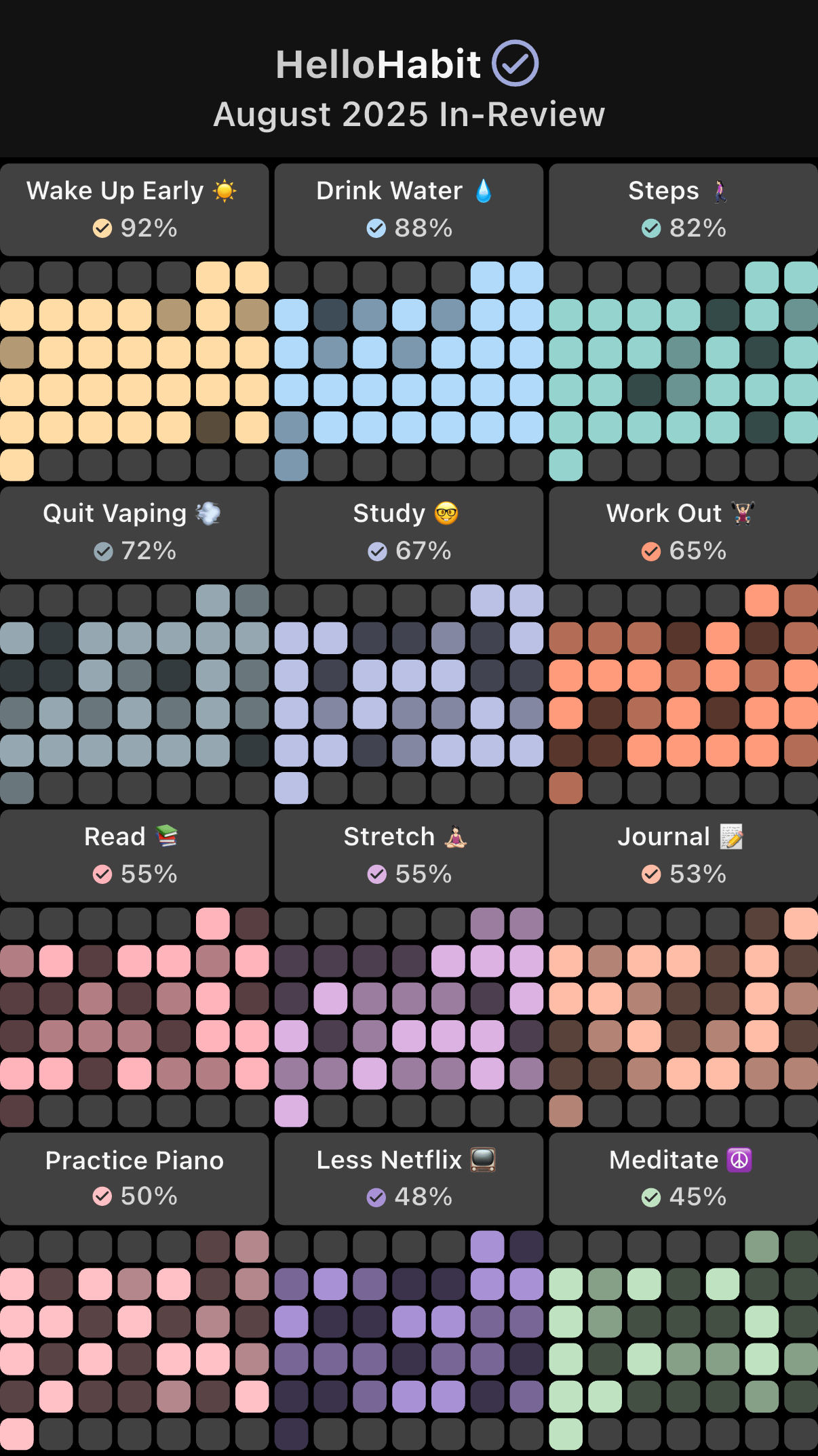 What I would recommend: Focus on few important habits. With too many, one starts to loose track or to gradally fail, which can quickly cause frustration and throwing it all away.