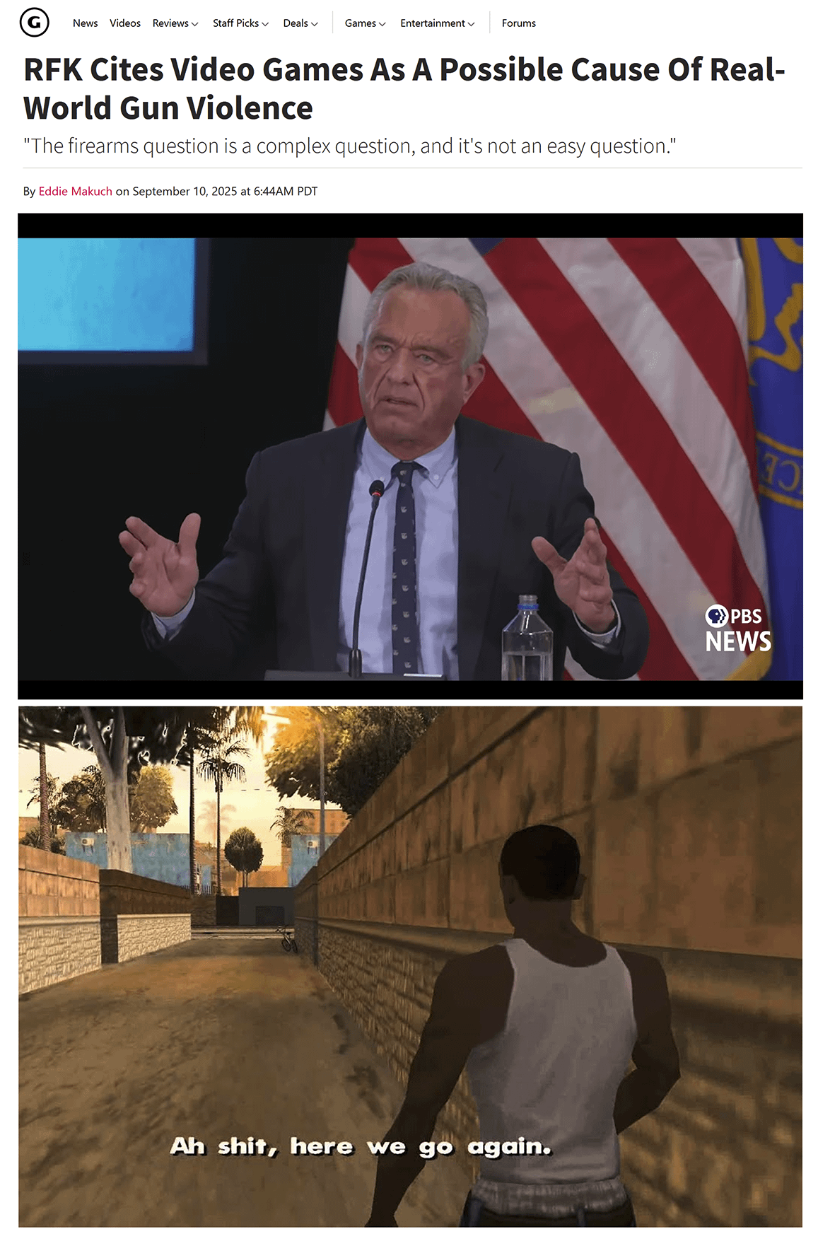 Hah, jokes on him, I use gun violence in video games as an outlet so I don’t commit real world gun violence.