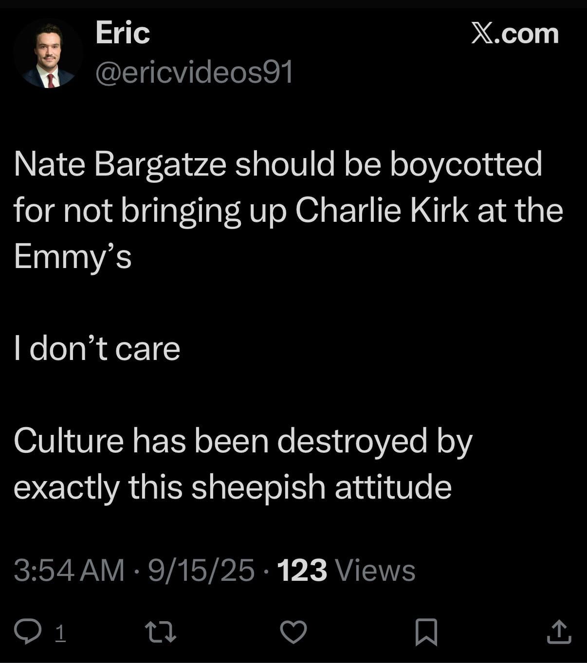 Not everything is about Charlie Kirk. The vast majority of Americans didn’t even know who he was until last week. If they did know who he was, they would prefer him not be mentioned at all.