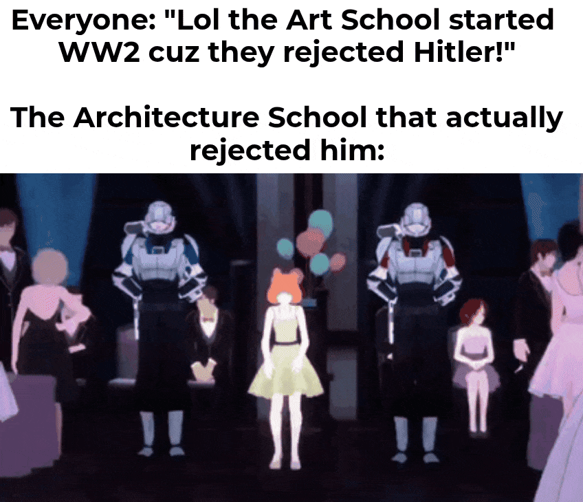 2. It’s more complicated then that. First off Hitler didn’t apply to the wrong school. He wasn’t that stupid. When his application failed, it was recommended he apply for the architecture school since he did have an eye for painting buildings.